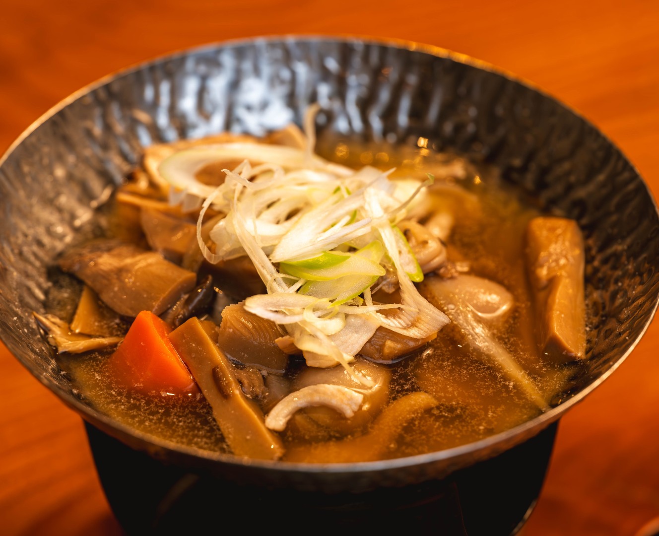 蓋を開けると茸の香りが広がります。ねっとりした里芋に絡めてお召し上がりください。