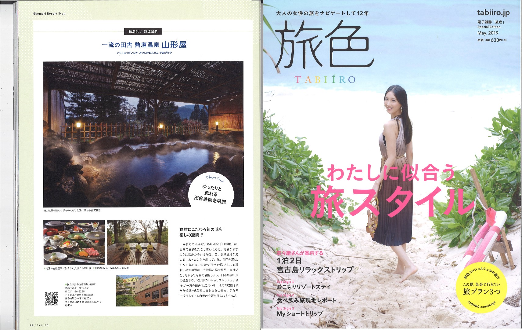 今回、旅情報サイトの旅色さんから始めて雑誌が出版されました。 その雑誌の中で”おこもりリゾートステイにぴったりなお宿”として当館が紹介されました。 旅館や温泉の情報だけでなく”私に似合う旅スタイル”のタイトル通り自分にあった旅の楽しみ方が見つけられる本となっております。 ぜひ、熱塩温泉山形屋で一流の田舎を感じながら旅を満喫してみませんか!?