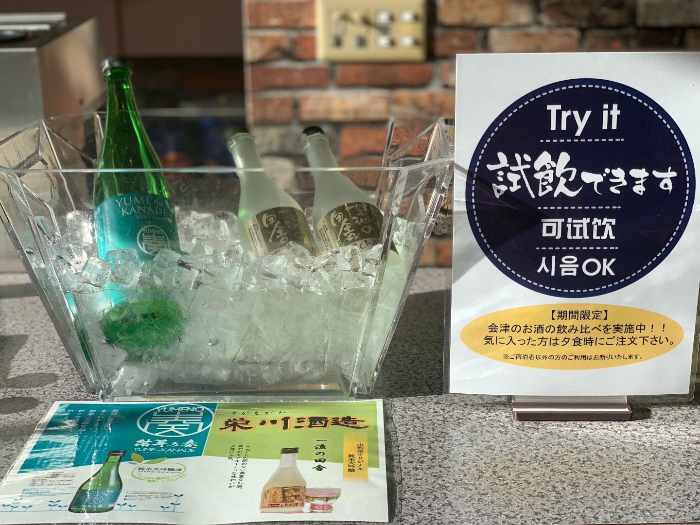 本日より当館ロビーにて日本酒の試飲を始めました。 旅の疲れを癒して頂くように、口当たりのよいフルーティーな味わいの純米大吟醸酒を2種類ご用意いたしました。 西会津の栄川酒造さんと当館とでコラボした当館オリジナルの純米大吟醸酒”一流の田舎”と会津若松の花春酒造さんの純米大吟醸”結芽の奏(ゆめのかなで)”の飲み比べが出来ます。 ※ご宿泊の方のみ対象 会津・喜多方 熱塩温泉山形屋より